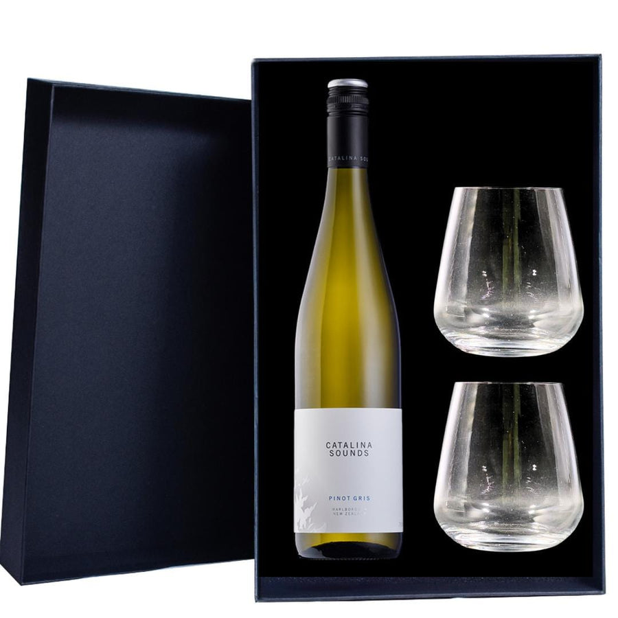 Personalised Catalina Sounds Pinot Gris 13.5% 750ml Gift Hamper includes 2 Premium Wine Glass